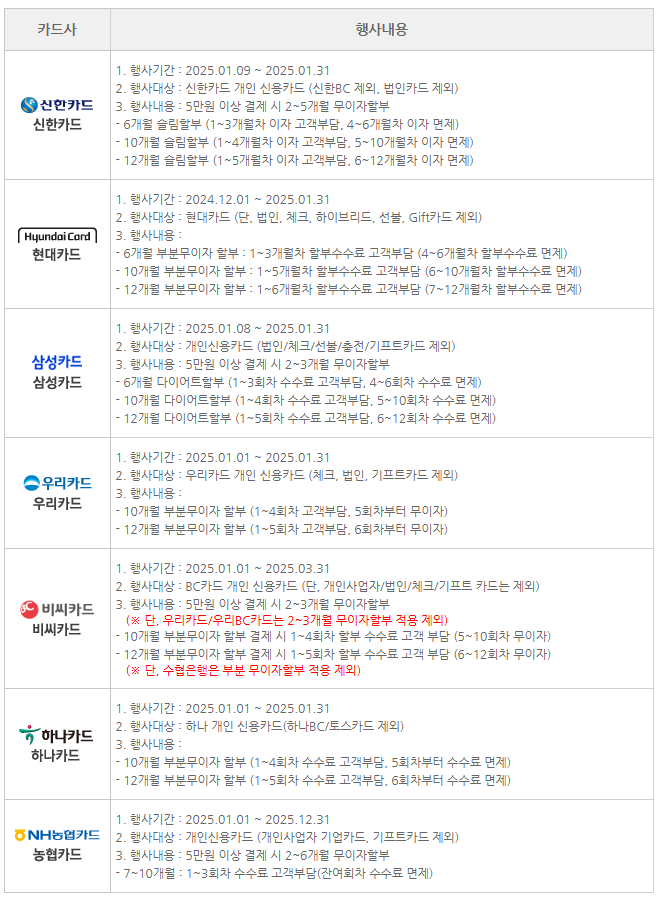 지방세(자동차세,재산세 등), 세외수입(대부료, 사용료, 과태료, 상하수도요금 등) 신용카드 무이자 할부 혜택을 제공합니다. 카드 무이자 혜택 관련 서비스는 각 카드사의 정책이므로 자세한 관련사항은 카드사 고객센터로 문의하시면 됩니다.