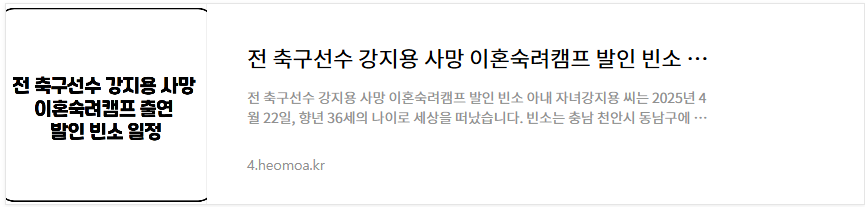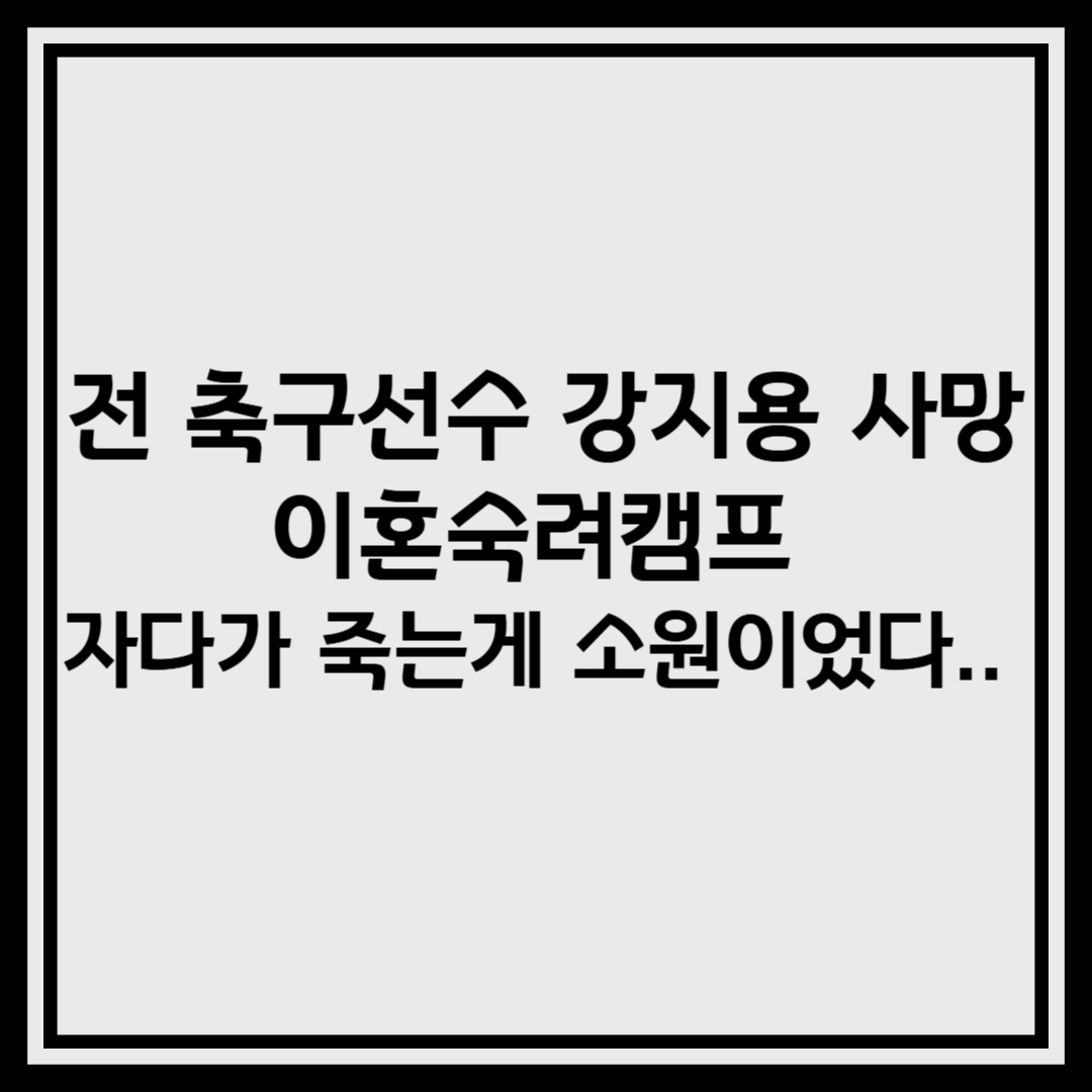 전 축구선수 강지용 씨의 사망 소식은 많은 이들에게 충격을 안겨주었습니다. 강지용 씨는 지난 2월 JTBC 예능 프로그램 '이혼숙려캠프'에 출연하여 가족 간의 갈등과 개인적인 어려움을 솔직하게 털어놓았으며, 그의 갑작스러운 사망은 이러한 배경과 맞물려 더욱 안타까움을 자아내고 있습니다.