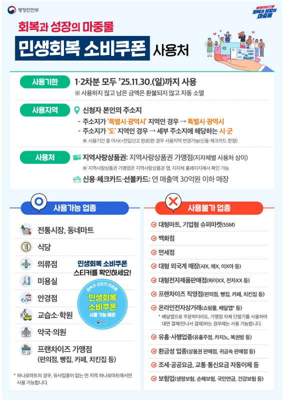 - 사용불가 업종: 대형마트·백화점·비대면 배달앱 등